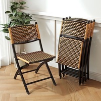 كرسي منسوج من الخيزران الهندي قابل للطي ، كرسي داخلي محمول متعدد الأحجام خارجي مع إطار معدني للفناء والشرفة والمنزل