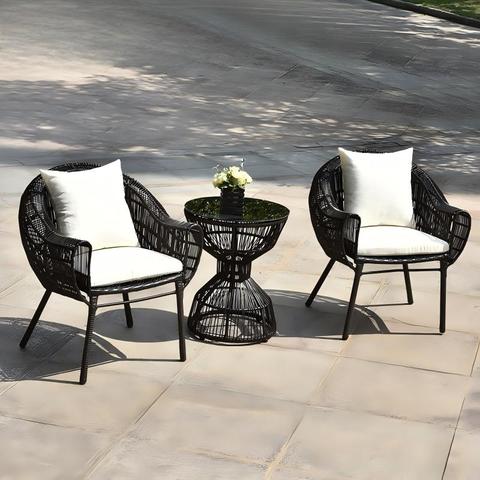 Juego de Muebles de Jardín de 3 Piezas, Moderno, para Exteriores, de Acero KD, para Balcón, Resistente a la Intemperie, Mimbre Sintético, con Mesa de Vidrio