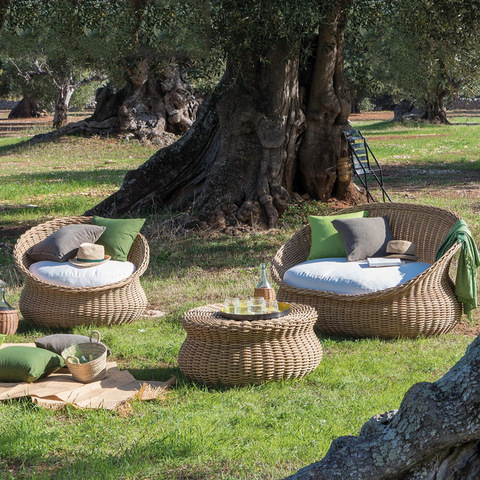 Conjunto de Muebles de Exterior Modernos de Alta Gama para Hoteles y Resorts de 5 Estrellas, Mesa de Centro de Jardín, Sofá de Mimbre y Ratán, Sofá de Exterior de Aluminio Resistente a la Oxidación