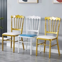 เก้าอี้ chiavari โลหะหรูหราพร้อมที่นั่งหุ้มเบาะเก้าอี้รับประทานอาหารงานแต่งงานหลากสี