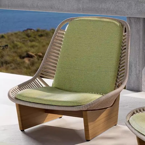 เก้าอี้โซฟากลางแจ้งเชือกทอ Wabi Sabi เก้าอี้หวายเดี่ยวกันน้ำระเบียงสวนโฮมสเตย์เฟอร์นิเจอร์ไม้เนื้อแข็ง