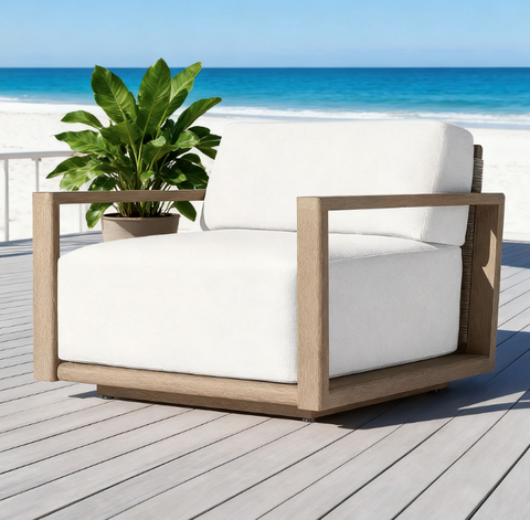 โซฟากลางแจ้งไม้สักป้องกันการกัดกร่อนเหมาะสำหรับลานพักผ่อนกลางแจ้งการป้องกันแสงแดดในสวนห้องอาบแดด