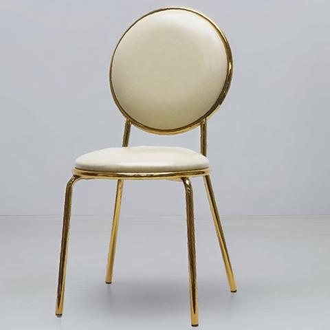 Silla de comedor dorada de lujo con respaldo tapizado en blanco, elegante silla para eventos