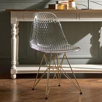 Chaise de salle à manger en acrylique transparent à motif diamant avec base en métal, chaise d'appoint moderne en résine transparente pour décoration intérieure